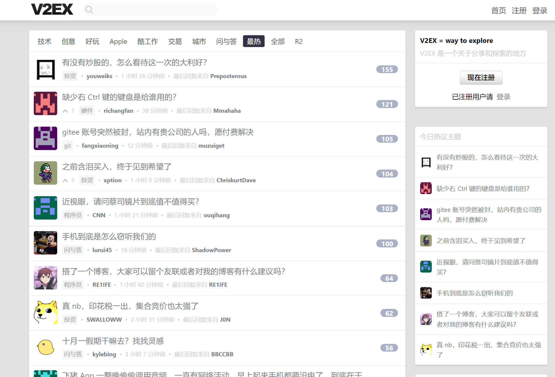 V2EX是一个面向程序员、极客人群的分享交流社区,目前该网站汇聚了超过 600,000 名主要来自互联网行业、游戏行业和媒体行业的创意工作者。在网站你可以交流你的生活和工作的任何内容,程序员求职、分享创意产品、技术问答、交易等等!